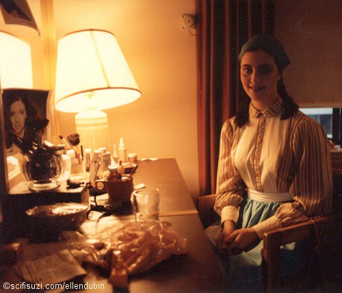 Ellen is in her hotel room getting ready to perform the show in the hotel's dinner theatre. |